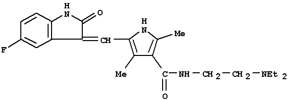 Products:   5-(5-Fluoro-2-oxo-1,2-dihydroindol-3-ylidenemethyl)-2,4-dimethyl-1H-pyrrole-3-carboxylic acid (2-diethylaminoethyl)amide